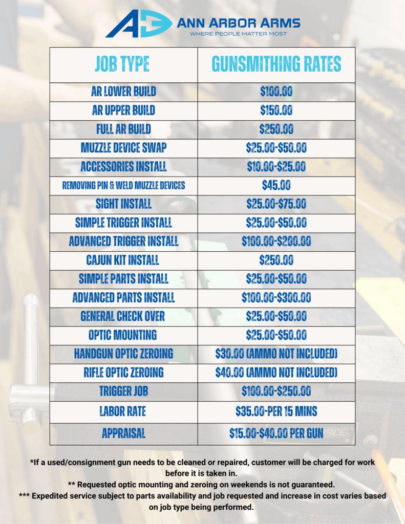 Ann Arbor Arms is proud to partner with KSCA for premium Cerakote and laser engraving services, and with ATEI for professional-grade optic cuts. These trusted partnerships allow us to offer top-tier customization and gunsmithing services to our customers.